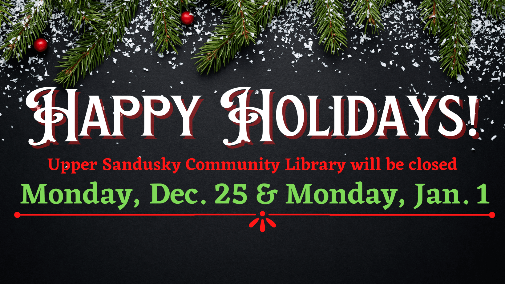 The Upper Sandusky Community Library will be closed Monday, Dec. 25 for Christmas and Monday, Jan. 1 for New Year’s Day.
